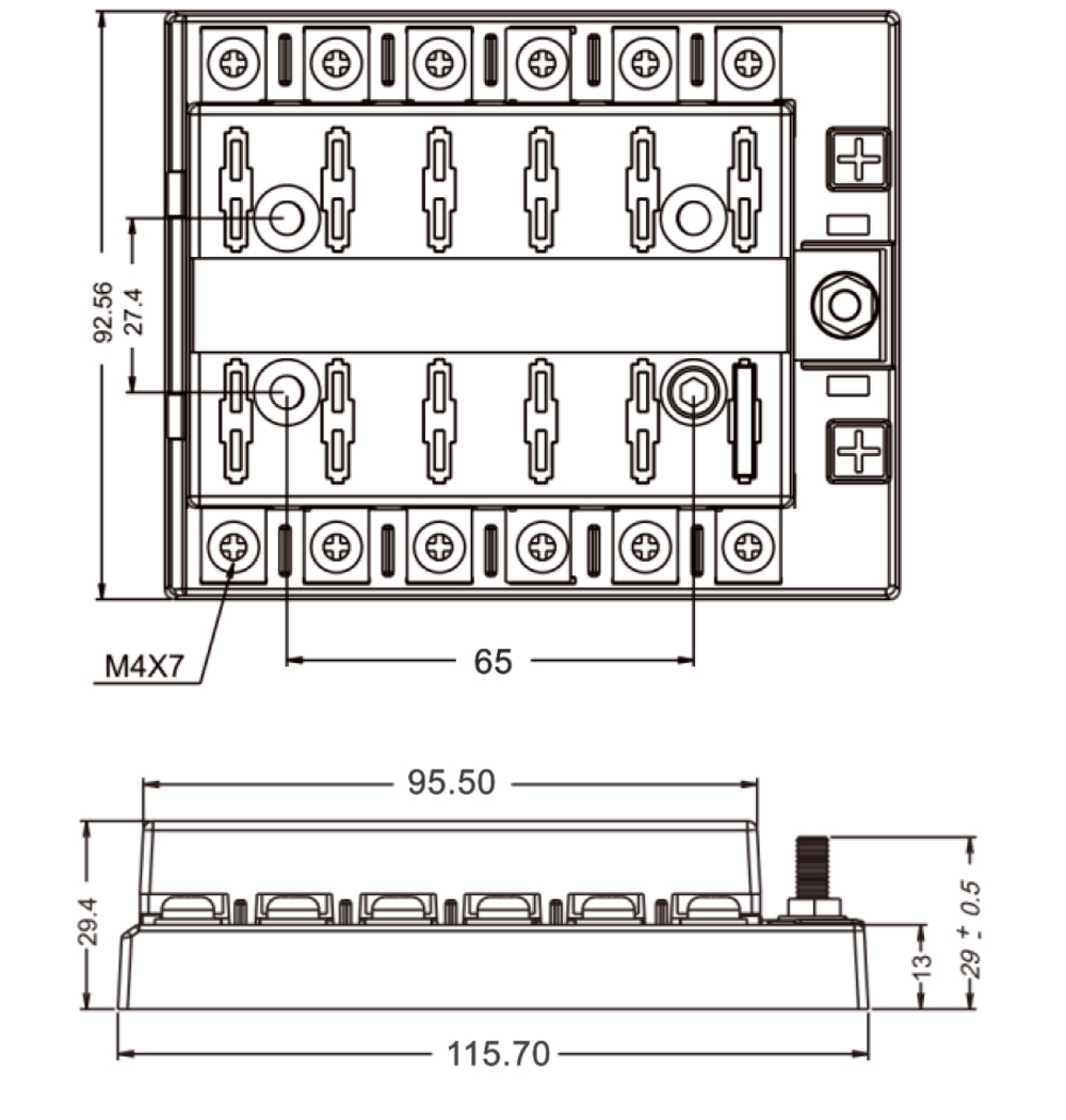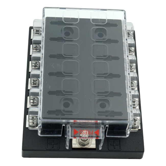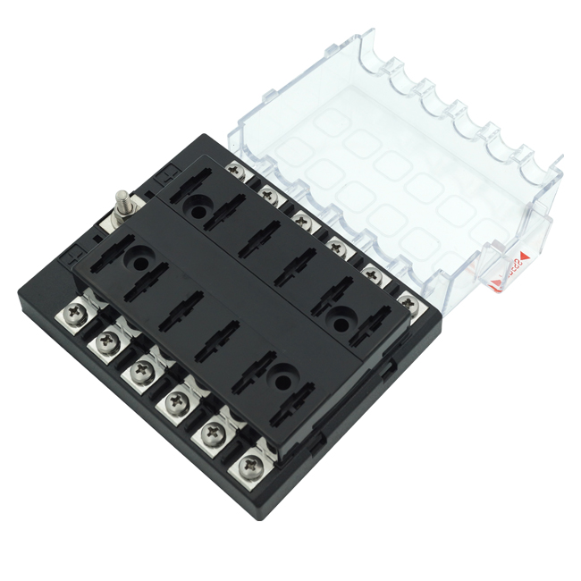 产品特点:保险丝座含有四个5.5mm螺孔,用于固定保险丝座。拥有透明的防尘防潮盖,更坚固更轻便的结构。黑色底座阻燃等级达到94V-0。