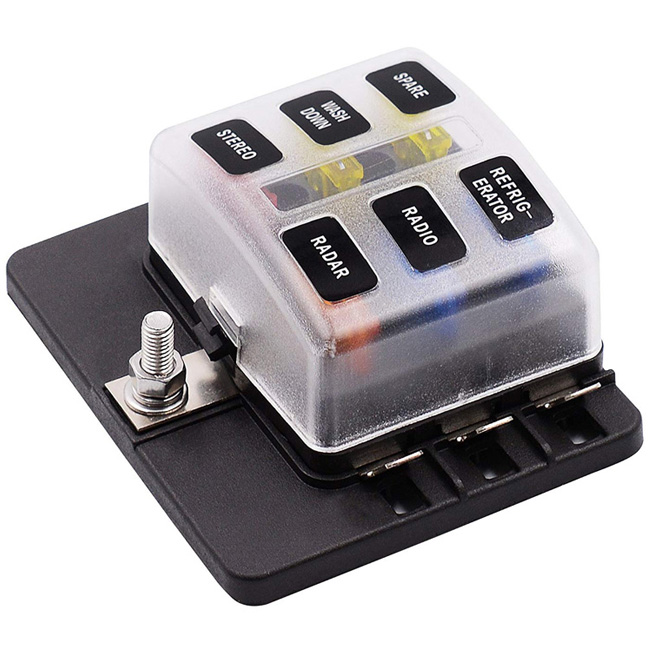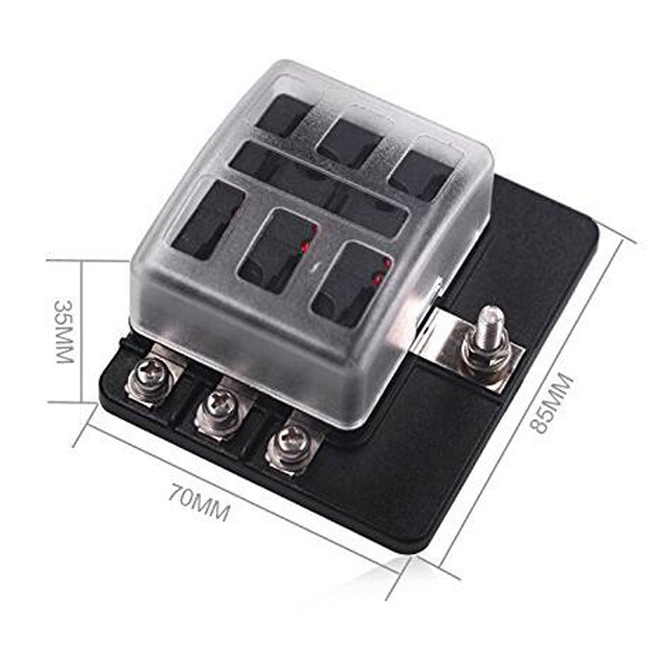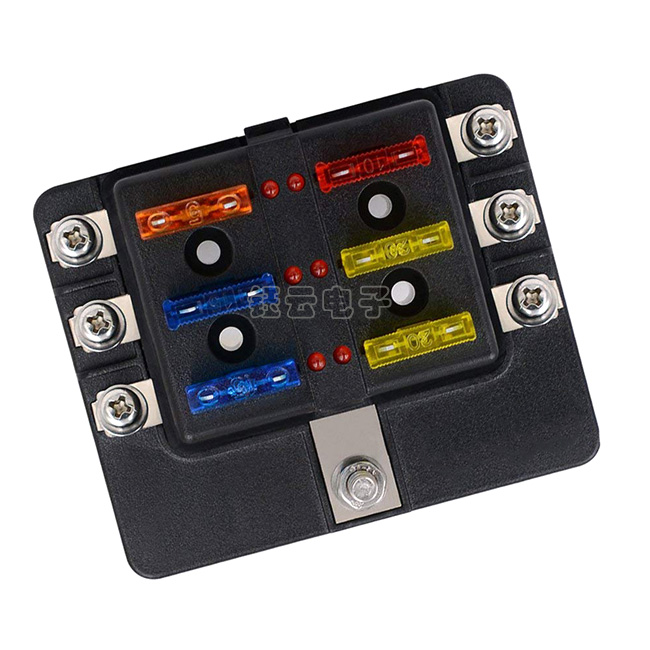 产品特点:保险丝座含有四个5.5mm螺孔,用于固定保险丝座。拥有透明的防尘防潮盖,更坚固更轻便的结构。黑色底座阻燃等级达到94V-0。
