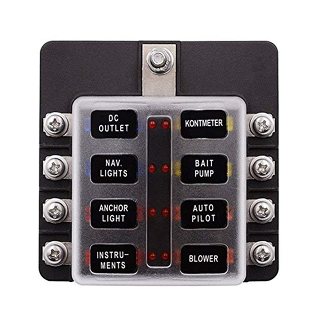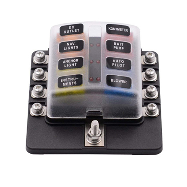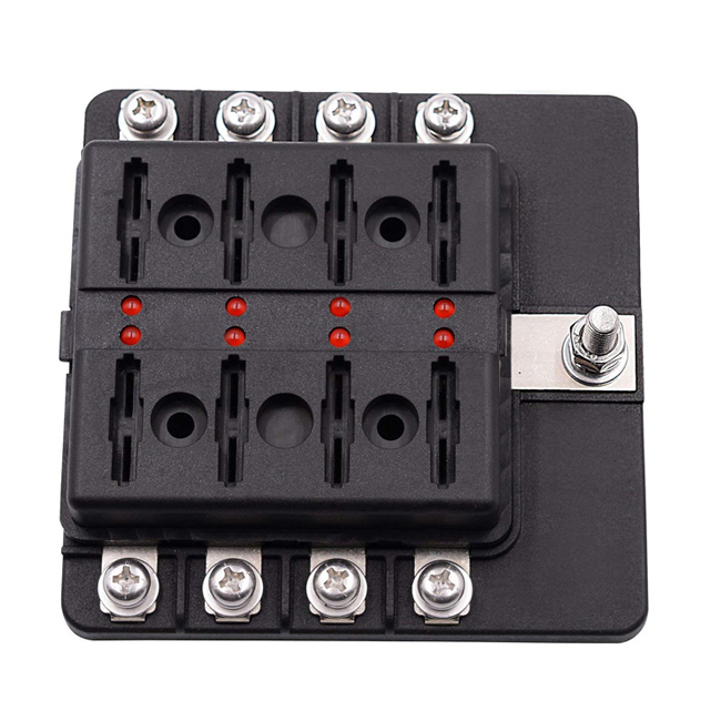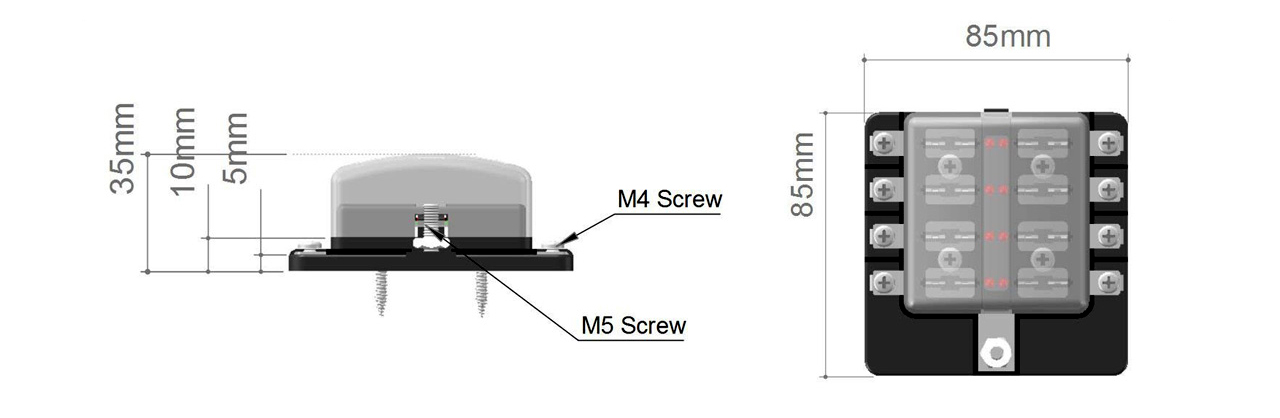 产品特点:保险丝座含有四个5.5mm螺孔,用于固定保险丝座。拥有透明的防尘防潮盖,更坚固更轻便的结构。黑色底座阻燃等级达到94V-0。