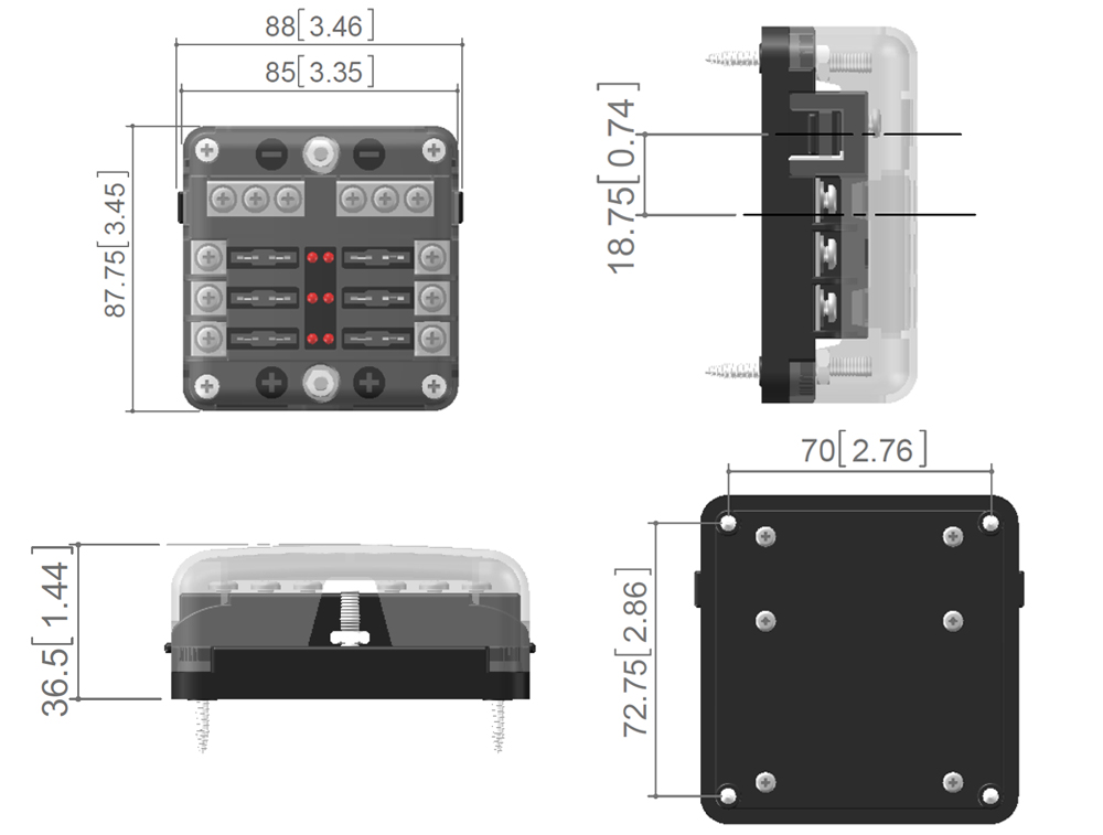 产品特点:保险丝盒的每个保险丝都可以连接到任何电气应用电路。广泛应用于汽车、SUV、游艇、船舶等行业。