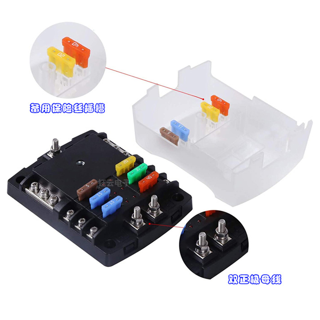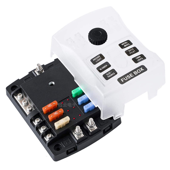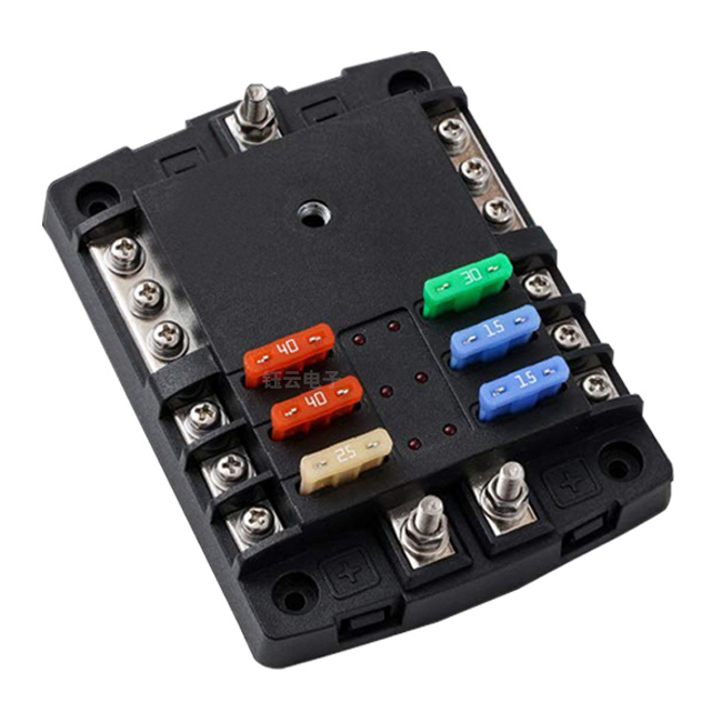 产品特点:保险丝盒的每个保险丝都可以连接到任何电气应用电路。广泛应用于汽车、SUV、游艇、船舶等行业。