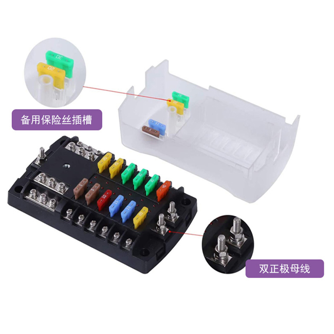 产品特点:保险丝盒的每个保险丝都可以连接到任何电气应用电路。广泛应用于汽车、SUV、游艇、船舶等行业。