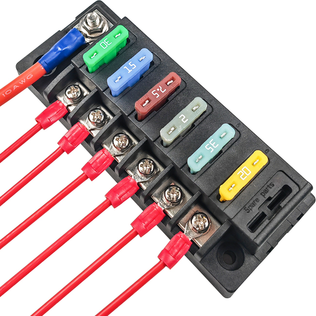 产品特点:保险丝盒的每个保险丝都可以连接到任何电气应用电路。广泛应用于汽车、SUV、游艇、船舶等行业。