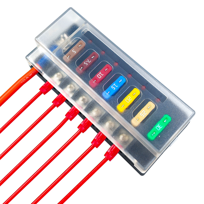 产品特点:保险丝盒的每个保险丝都可以连接到任何电气应用电路。广泛应用于汽车、SUV、游艇、船舶等行业。